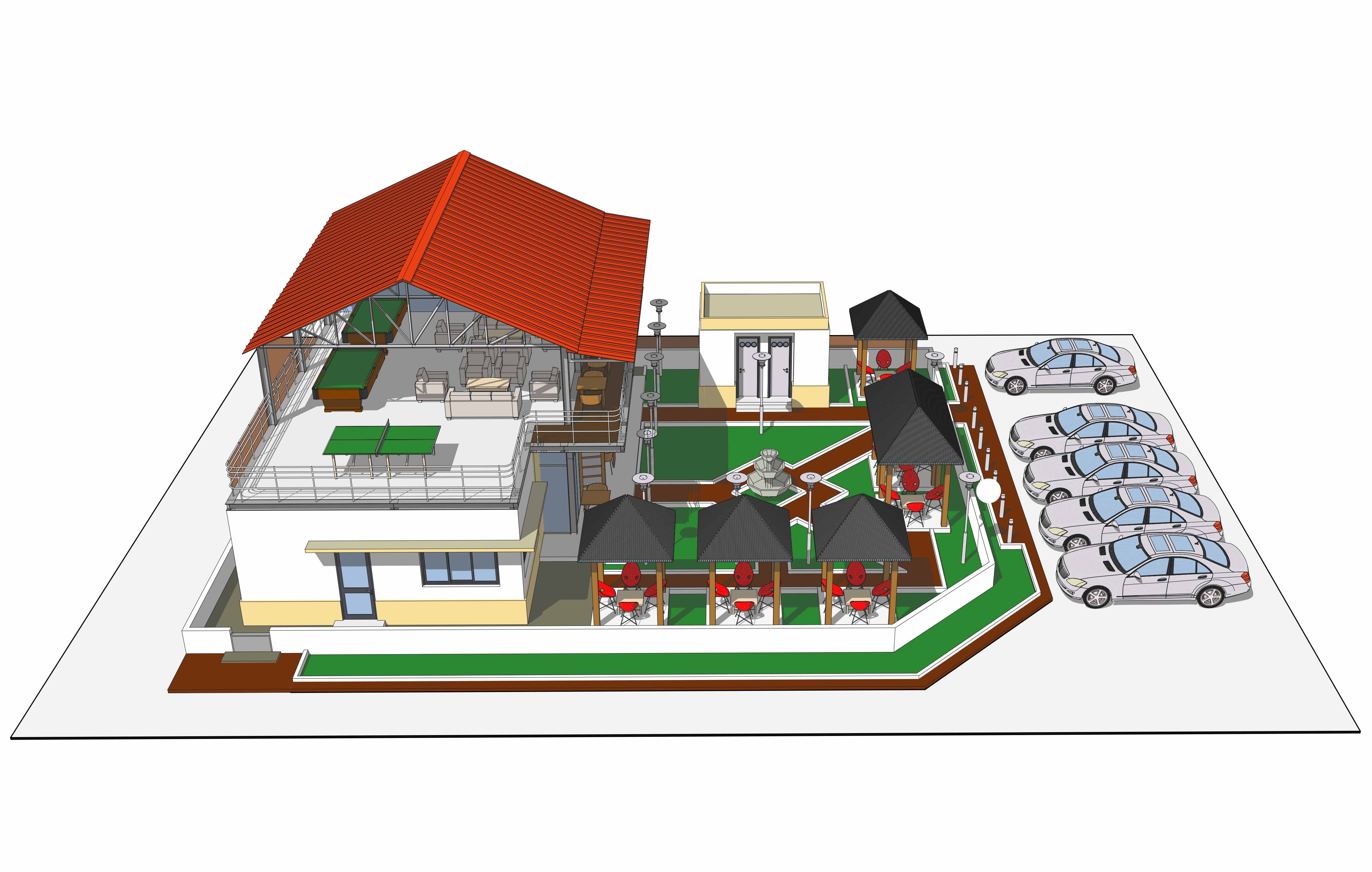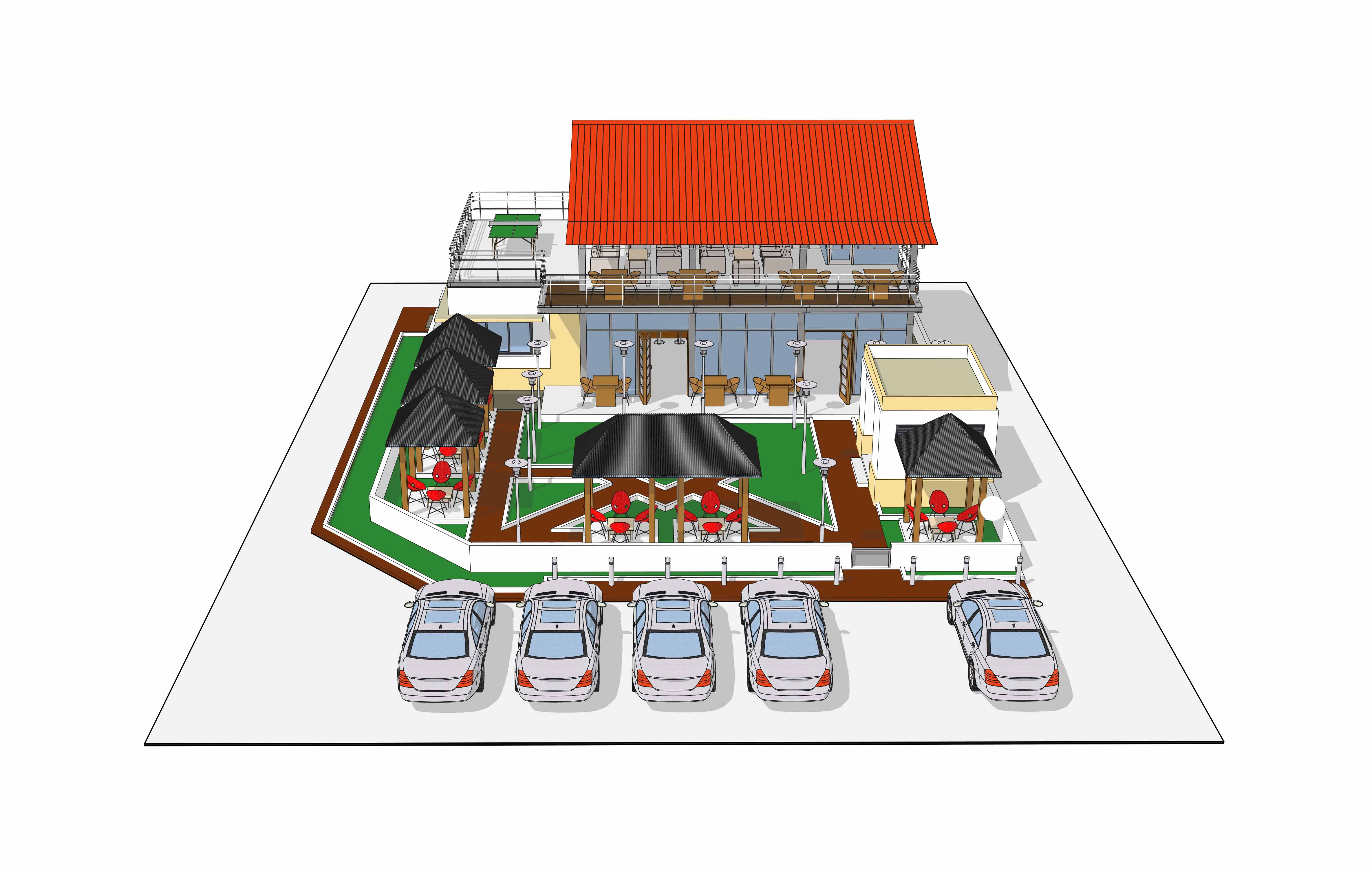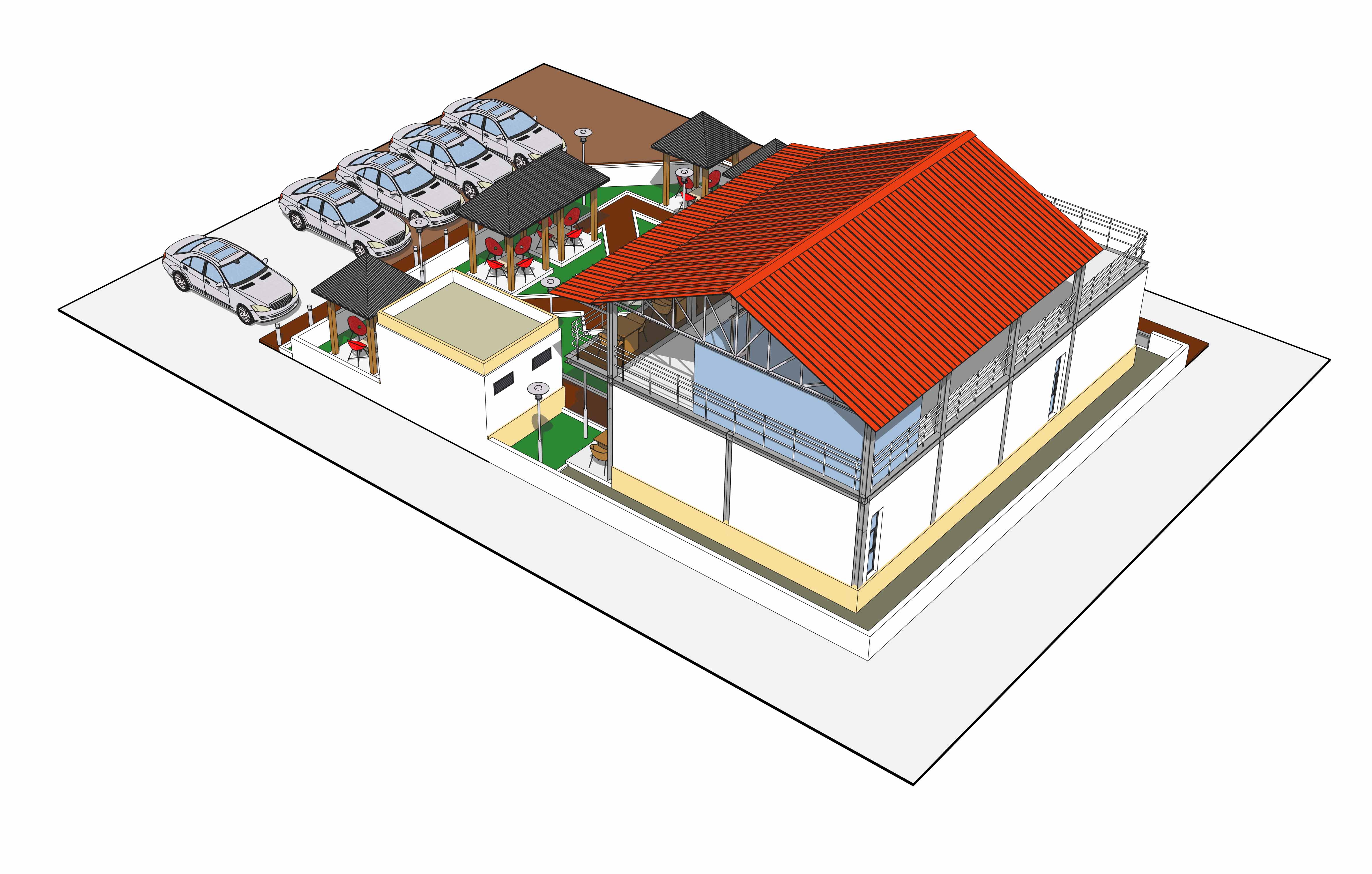 Restaurant – Bar – JeuxEtudes architecturales et techniques pour la construction d’un restaurant en structure mixte ( métallique et béton)