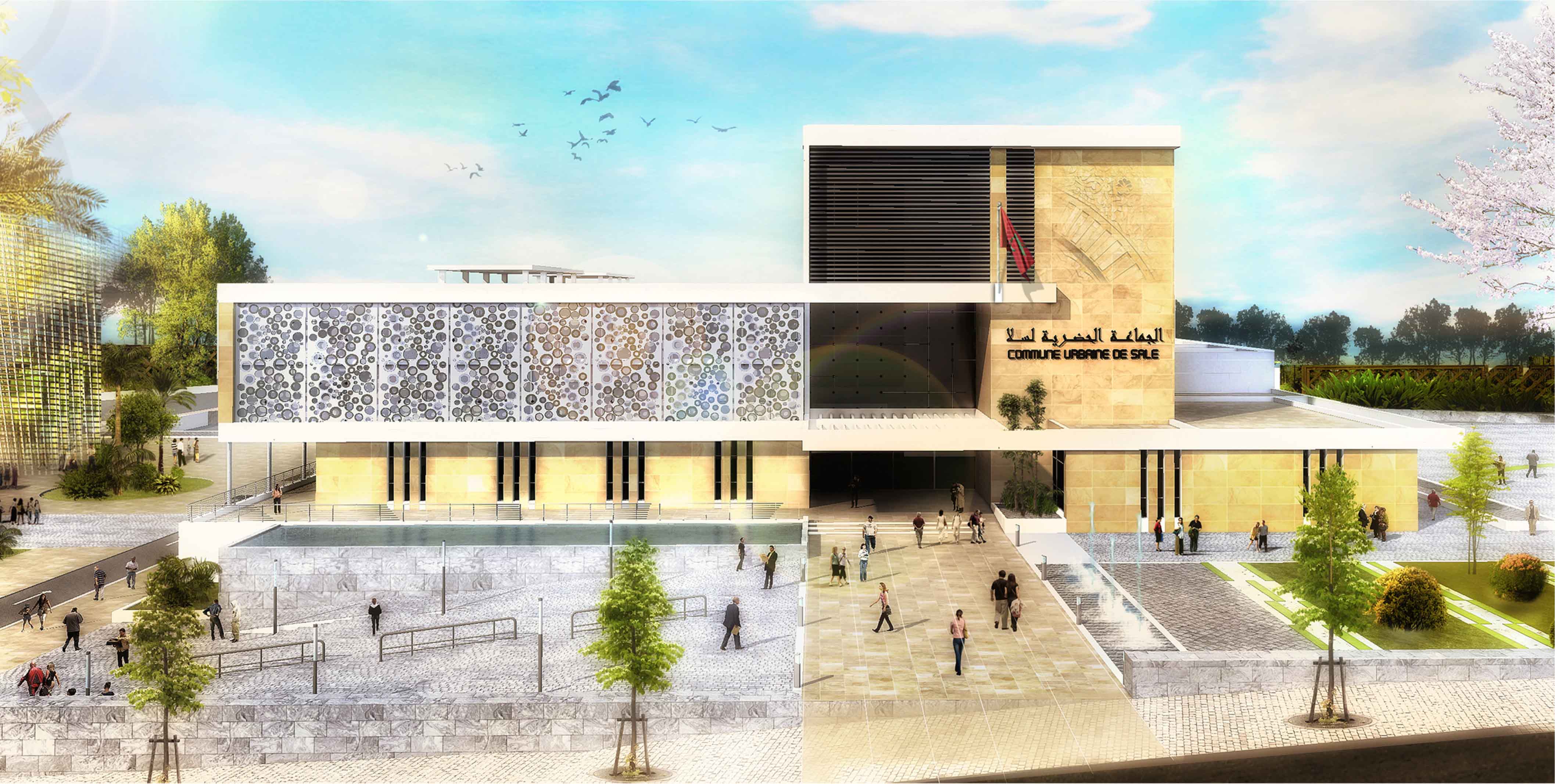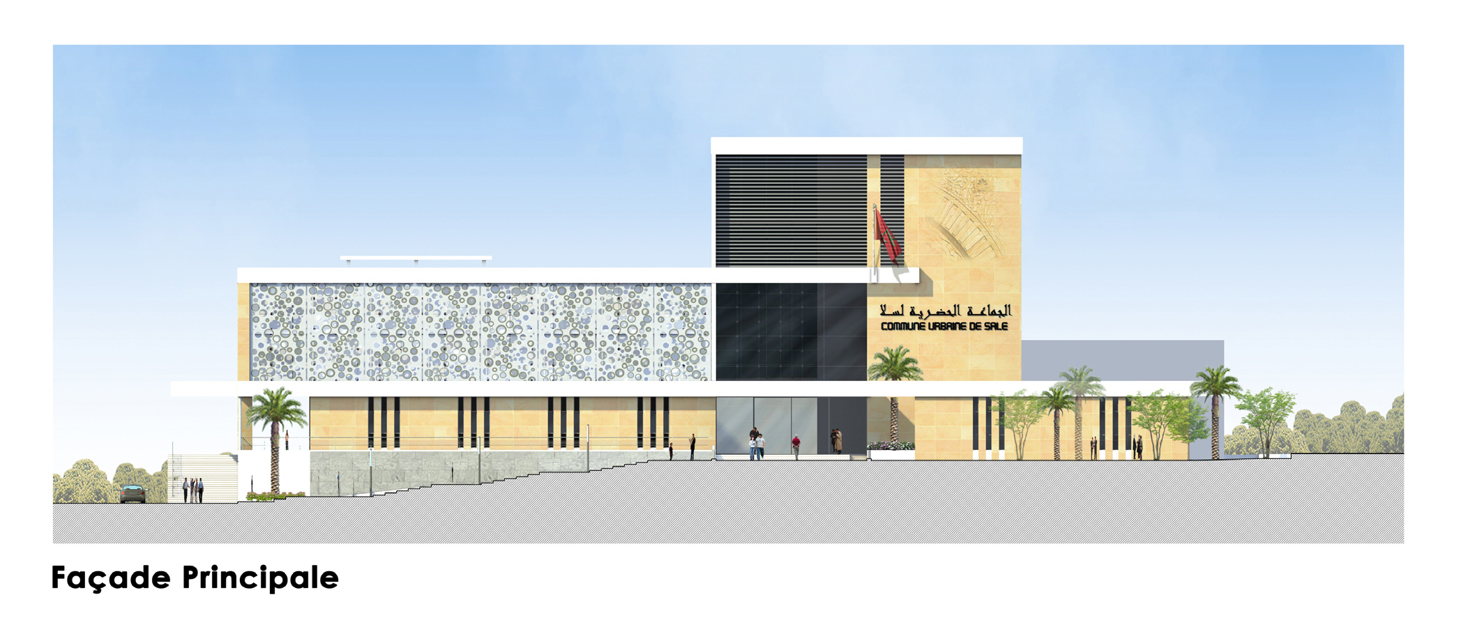 Immeuble R+2 comprenant Bureaux, salles de réunion, salle de conférence et aménagement d’une esplanade piétonneEtudes architecturales pour la construction d’un bâtiment annexe pour le compte de la Mairie de Salé