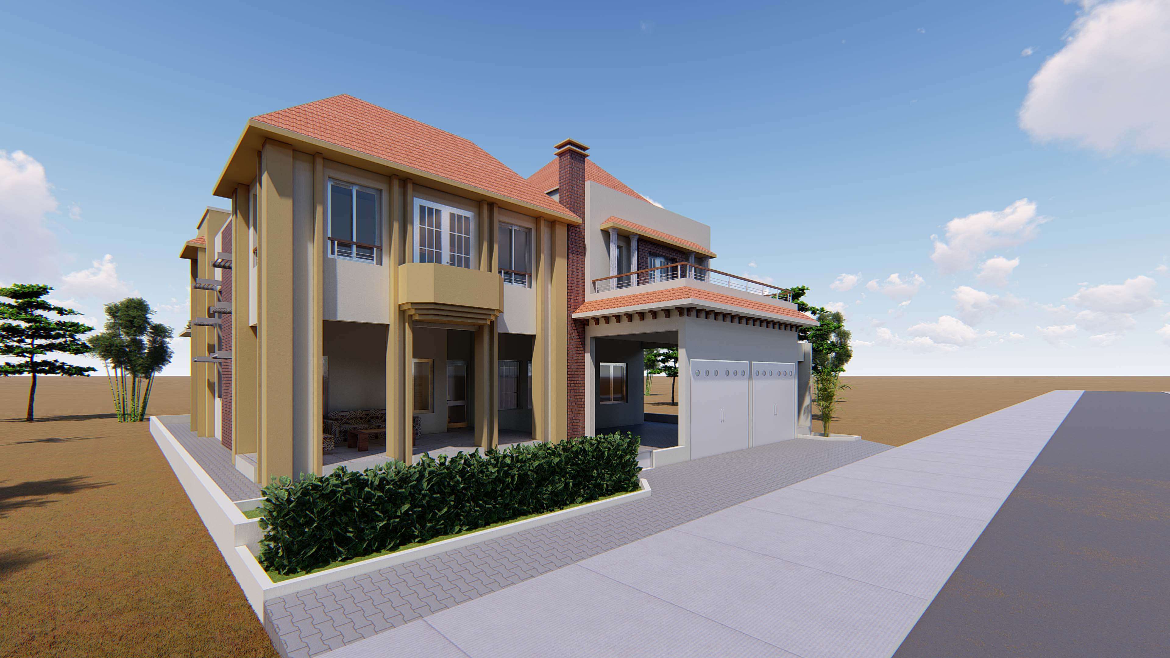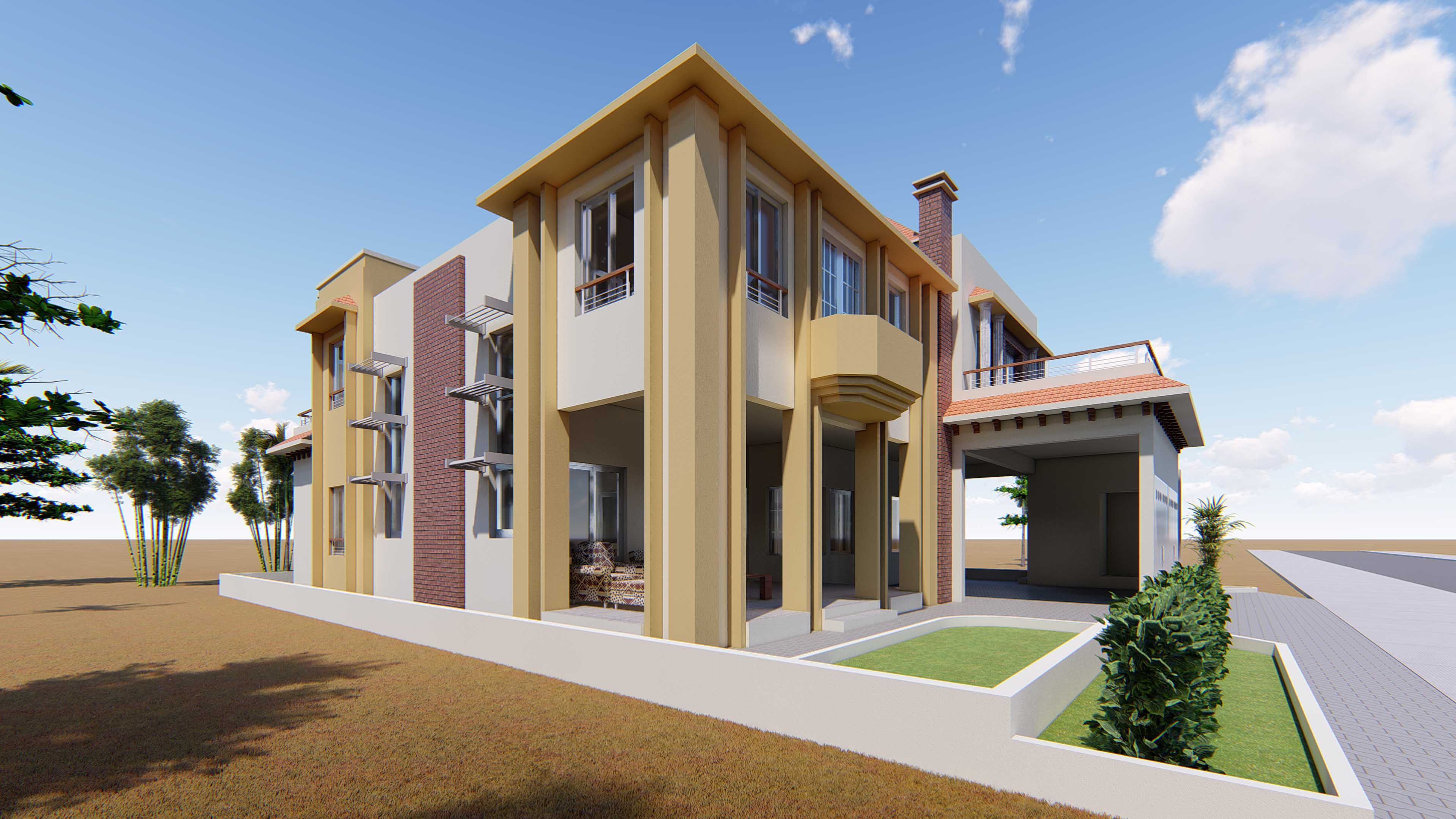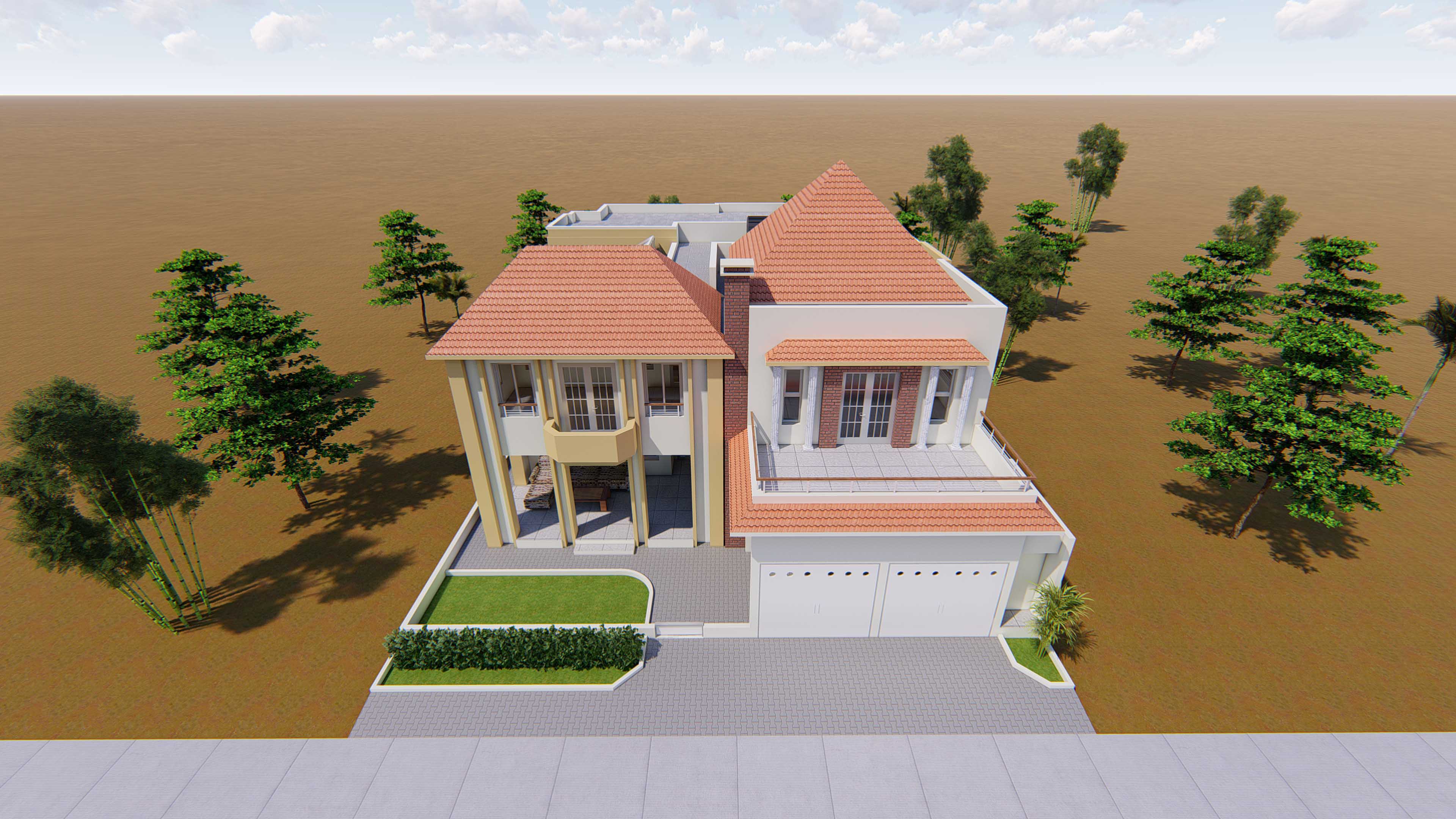 Villa R+1 comprenant : 03 Séjours, 06 Chambres, 01 Salle à manger, 01 Cuisine, 01 Bureau, 01 Salle d’études, 02 Chambres de serviceEtudes architecturales et techniques pour la construction d’une Villa R+1